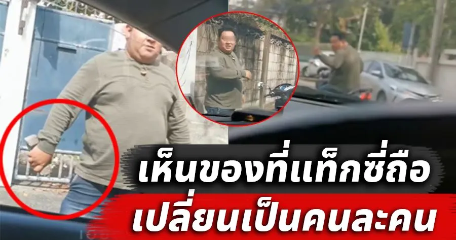 จยย.หัวร้อนจัดปาดหน้าแท็กซี่ ก่อนหยิบหินพร้อมปะทะ