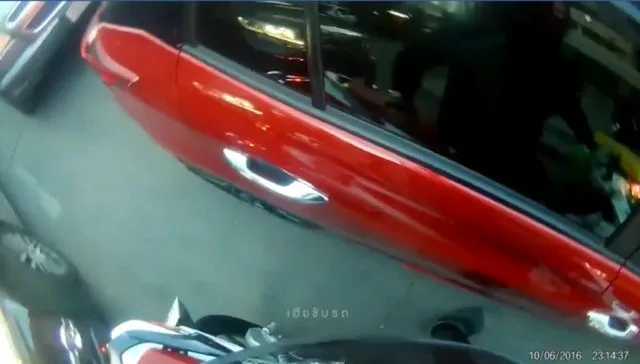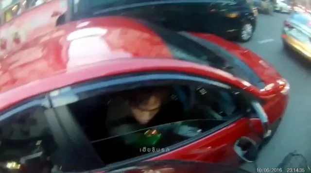 เรียกได้ว่าเป็นอีกหนึ่งคลิปที่ชาวเน็ตแห่แชร์และเข้ามาแสดงความคิดเห็นกันเป็นจำนวนมาก หลังมีผู้ใช้เฟสบุ๊ครายหนึ่งได้ออกมาโพสต์คลิปซึ่งคลิปดังกล่าวเป็นคลิปจากกล้องของจยย.คันหนึ่ง ที่ขับขี่มาเฉี่ยว เก๋งสีแดงคันดังกล่าว แต่งานนี้ทางฝั่ง จยย. พอรู้ว่าผิด ก็ได้กล่าวคำขอโทษส่วนเจ้าของเก๋งก็ได้ลงมาดูร่องรอยที่ถูกเฉี่ยว พร้อมพูดออกมาว่า ไม่เป็นไรๆ และได้มีการขอจับมือกัน ก่อนจะแยกย้ายเป็นด้วยดี