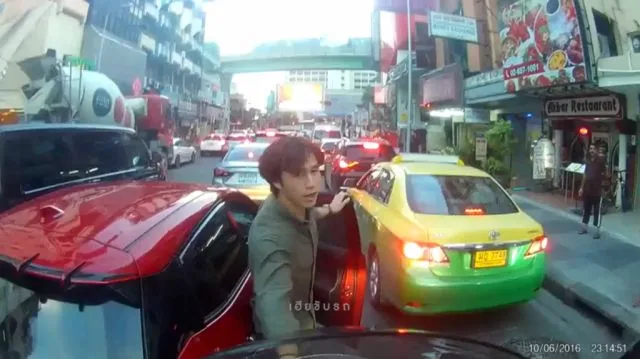 เกิดเรื่องกลางถนน เจ้าของเก๋งรีบลงมาดู อู้หูวววหล่อจัง (ชมคลิป)