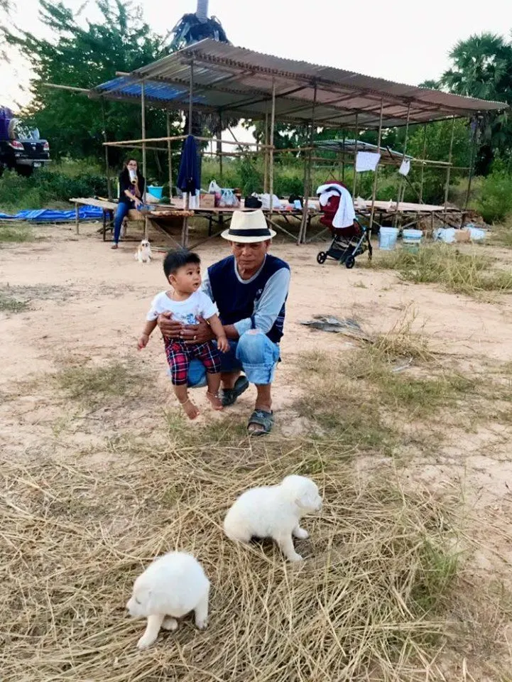 “เห็นพ่ออุ้มมาก้อนอะไรขาวๆ เอ้านั่นลูกหมามาตอนไหนก็ไม่ทันสังเกตุ ทำทีมาตกปลาแถวคลองแล้วก็เอามาทิ้ง มนุษย์เอ้ยมนุษย์ทิ้งกันได้ลงคอ แต่ยังไงก็ขอบคุณคุณมากที่เอาโชคสัตว์ 4 เท้ามาให้ถึงบ้านในวันที่จะมีงานบุญ ต่อไปนี้คงต้องเลี้ยงไว้ ตั้งชื่อให้แล้ว”