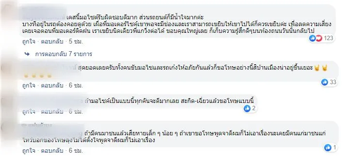 วันนี้ (30 ต.ค.) เพจเฮีย เผยคลิปดังกล่าวพร้อมตั้งแคปชั่นว่า "หล่อใหญ่ใจดี" โดยคลิปนี้มีชาวเน็ตเข้าไปชื่นชมทั้งเจ้าของรถยนต์ และคนขับจักรยานยนต์ ที่ต่างคนต่างมีน้ำใจเอื้อเฟื้อ ไม่ระเบิดอารมณ์ใส่กันจนเกิดการทะเลาะวิวาท