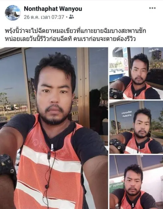 ทั้งนี้ ก่อนเกิดเหตุในเฟซบุ๊ก Nonthaphat Wanyou โพสต์ข้อความระบุว่า พรุ่งนี้ว่าจะไปฉีดยาหมอเขียวที่เกาะยายฉิมบางสะพานซักหน่อยเลยวันนี้ได้รีวิวก่อนฉีดที คนเราก่อนจะตายต้องรีวิว