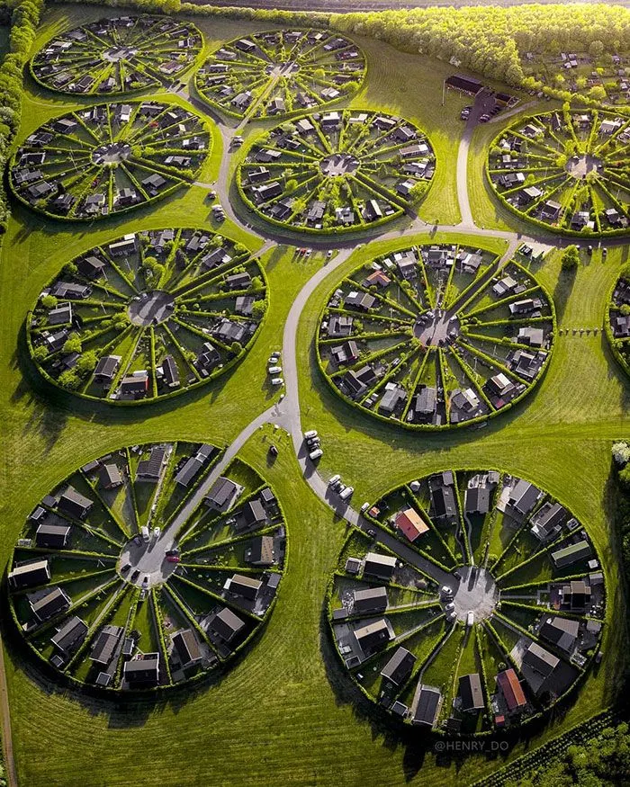 วันนี้เราจะพาทุกท่านไปชมความงดงามของหมู่บ้านแห่งหนึ่งในประเทศเดนมาร์ก ที่เขามีการออกแบบผังเมืองให้มีความเป็นเอกลักษณ์เฉาพะตัว ยิ่งถ่ายภาพมุมสูงออกมายิ่งน่าทึ่งมากๆ เห็นแล้วอยากไปอยู่ที่นั่นเลย