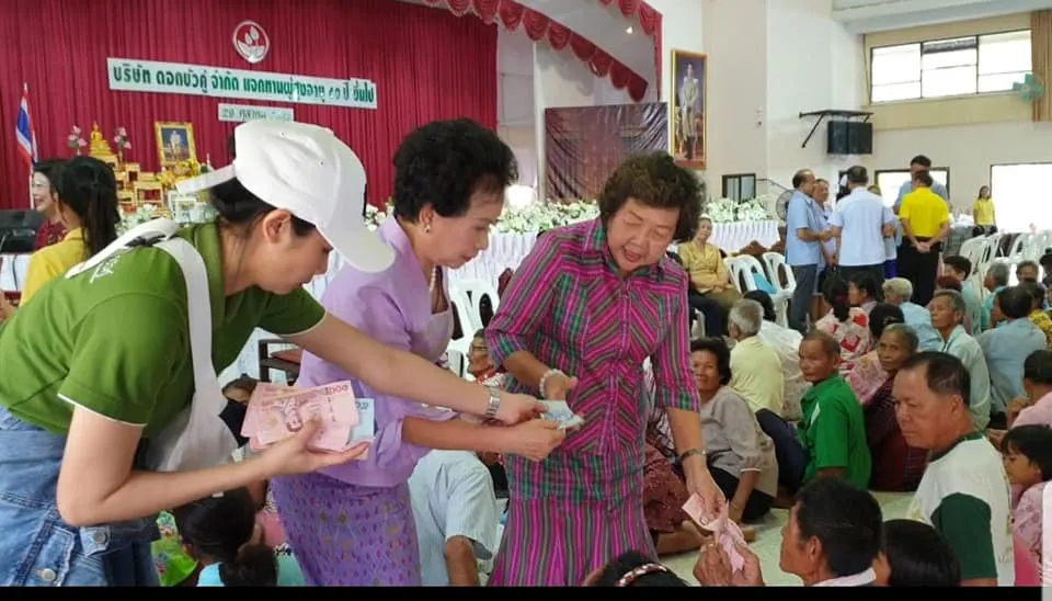พร้อมกันนี้ทางองค์การบริหารส่วนจังหวัดยังได้จัดให้มีโรงทานแจกน้ำดื่มและข้าวกล่องบรรยากาศเป็นไปด้วยความคึกคัก สำหรับกิจกรรมการแจกเงินผู้สูงอายุของบริษัทดอกบัวคู่ จำกัด ได้เริ่มจัดขึ้นเป็นประจำทุกปีตั้งแต่สมัยดร.บุญกิจ ลีเลิศพันธ์ อดีตประธานกรรมการบริษัทดอกบัวคู่ได้ริเริ่มจัดโครงการแจกเงินผู้สูงอายุในช่วงเทศกาลวันสงกรานต์ติดต่อกันทุกปี