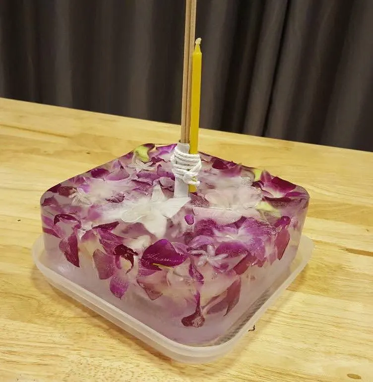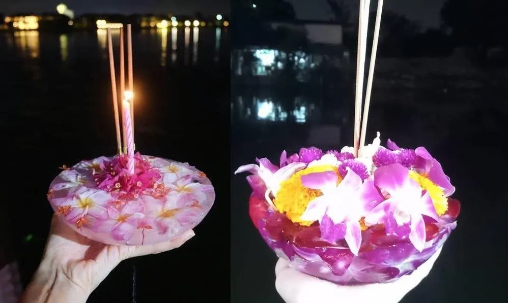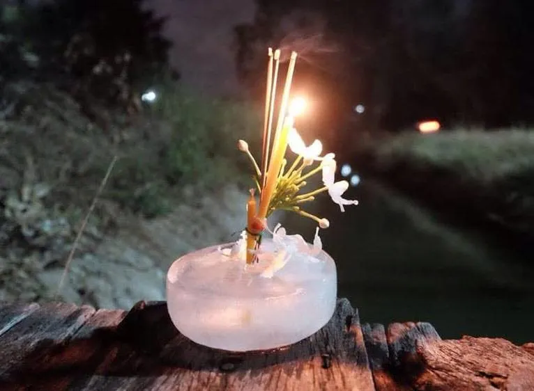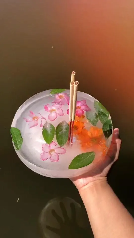 คำเตือน! กระทงน้ำแข็งควรรีบลอยให้เร็วที่สุด ไม่แนะนำให้อธิษฐานนานเพราะอาจทำให้มือคุณแข็ง และอาจจะละลายเหลือแต่ดอกไม้ธูปเทียนก่อนลอยน้ำเป็นแน่