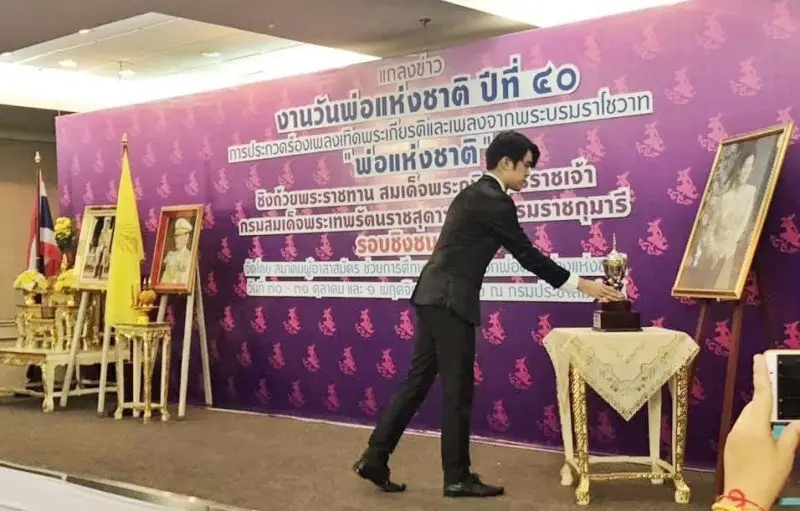 หนุ่มหล่อเสียงดี..จากรั้วนิเทศศาสตร์ ม.ศรีปทุม คว้ารางวัลถ้วยพระราชทาน สมเด็จพระกนิษฐาธิราชเจ้า กรมสมเด็จพระเทพรัตนราชสุดา สยามบรมราชกุมารี การประกวดขับร้องเพลงเทิดพระเกียรติและเพลงจากพระบรมราโชวาท ”พ่อแห่งชาติ” ปีที่ 40