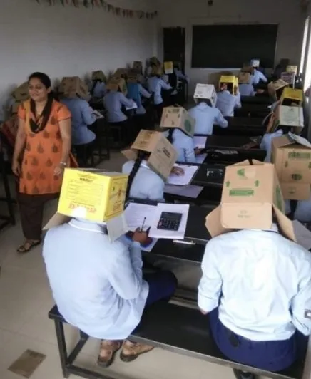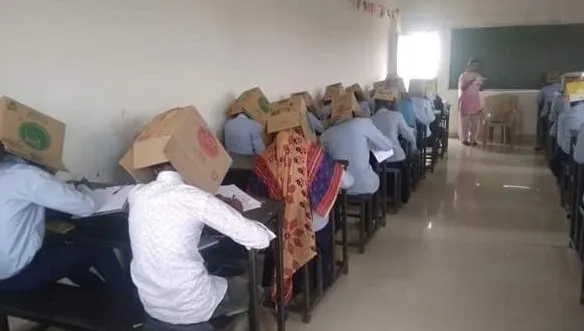 ล่าสุดที่ วิทยาลัย Pre-University ของ Bhagat ใน Haveri ของประเทศอินเดีย กำลังเผชิญกับคำวิจารณ์อย่างกว้างขวาง เกี่ยวกับการให้นักเรียนใส่กล่องกระดาษแข็งไว้บนศีรษะในช่วงระหว่างการสอบ เพื่อป้องกันการโกงของนักเรียน โดยนักเรียนสามารถดูแผ่นสอบและโต๊ะสอบผ่านช่องเล็ก ๆ ที่ถูกตัดออกจากด้านหน้าของกล่อง