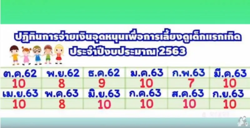 ปฏิทินการจ่ายเงินอุดหนุนบุตร