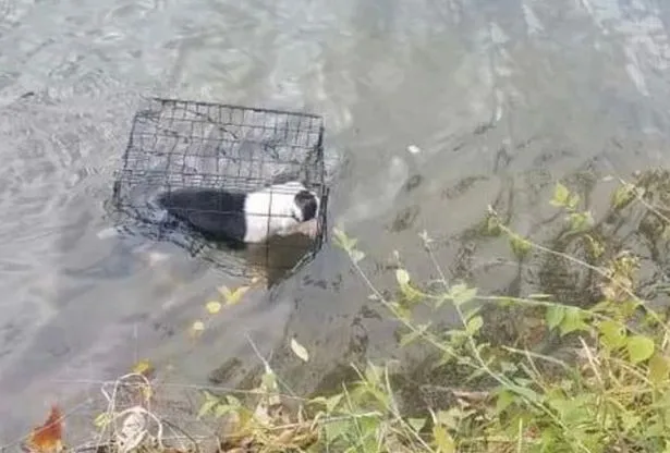 หวังให้ตาย!ลูกสุนัขถูกขังกรงแล้วโยนทิ้งในทะเลสาบเย็นยะเยือก โชคดีมีคนช่วยเหลือทัน
