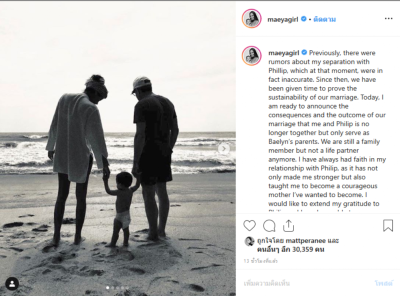เรียกได้ว่าเป็นเรื่องราวที่ทำเอาหลายคนถึงกับช็อกกันเลยทีเดียว สำหรับเรื่องราวที่สาวเมญ่า ประกาศเลิกสามีฟิลิบ ซึ่งก่อนหน้านี้ได้มีโพสต์ส่อแววเลิกกันมาก่อน แต่สาวเมญ่าก็ได้ออกมาบอกว่าไม่ได้เลิกกันจ้า ยังรักกันดี โดยล่าสุดสาวเมญ่าก็ได้ออกมาโพสต์ชี้แจงว่าความสัมพันธ์ตอนนี้เป็นเพียงเพื่อนที่ดีต่อกันเท่านั้น