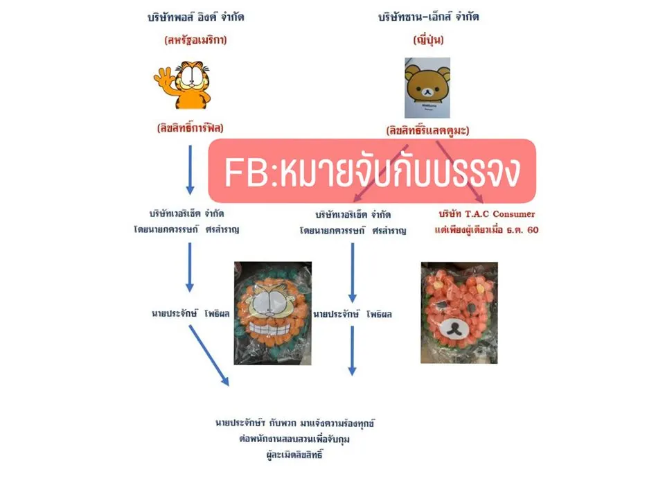 เพจ หมายจับกับบรรจง โพสต์เรื่องราวที่เป็นข่าว แก๊งล่อซื้อจับลิขสิทธิ์
