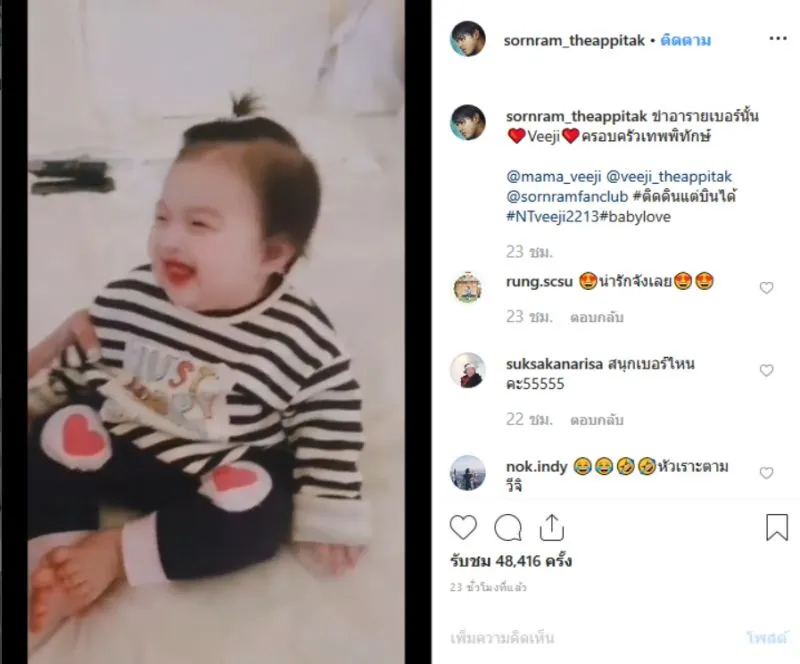 ล่าสุด คุณพ่อ ศรราม ก็ได้เผยภาพ น้องวีจิ กำลังหัวเราะ แฮปปี้สุดๆ โดยระบุข้อความว่า ขำอารายเบอร์นั้น Veejiครอบครัวเทพพิทักษ์ บอกเลยว่าเป็นภาพที่ทำแฟนคลับดูไปยิ้มไปเลยล่ะค่ะ