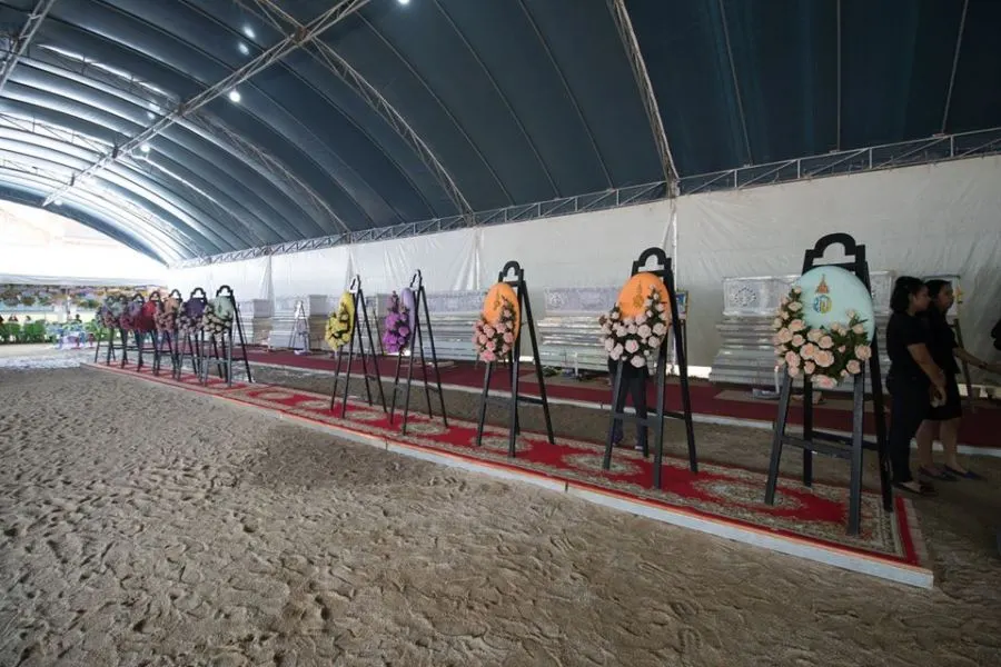 โดยในส่วนของการจัดเตรียมทำพิธีณาปนกิจศพ ผู้เสียชีวิตทั้ง 9 รายนั้น ทางองค์การบริหารส่วนตำบลลำพะยา และกองพัน อรบ.ลำพะยา ได้หารือร่วมกันในการจัดทำพิธีโดยการสร้างเมรุเผาศพ ชั่วคราวกลางแจ้ง โดยขอความร่วมมือจากชาวบ้านและประชาชน ตำบลลำพะยา ร่วมกันทำเชิงตะกอน โดยใช้อิฐบล็อคแดง ซึ่งได้รับการสนับสนุนจาก ศูนย์อำนวยการบริหารจังหวัดชายแดนภาคใต้ จำนวนทั้งหมด 2100 ก้อน โดยทำการตกแต่งให้มีความสวยงามเหมาะสมเพื่อให้สมเกียรติกับผู้เสียชีวิตในครั้งนี้ ซึ่งบรรยากาศทั่วไปยังคงเต็มไปด้วยความโศกเศร้าเสียใจทั้งครอบครัว ญาติพี่น้อง และประชาชนที่ได้เดินทางไปร่วมในงานศพครั้งนี้