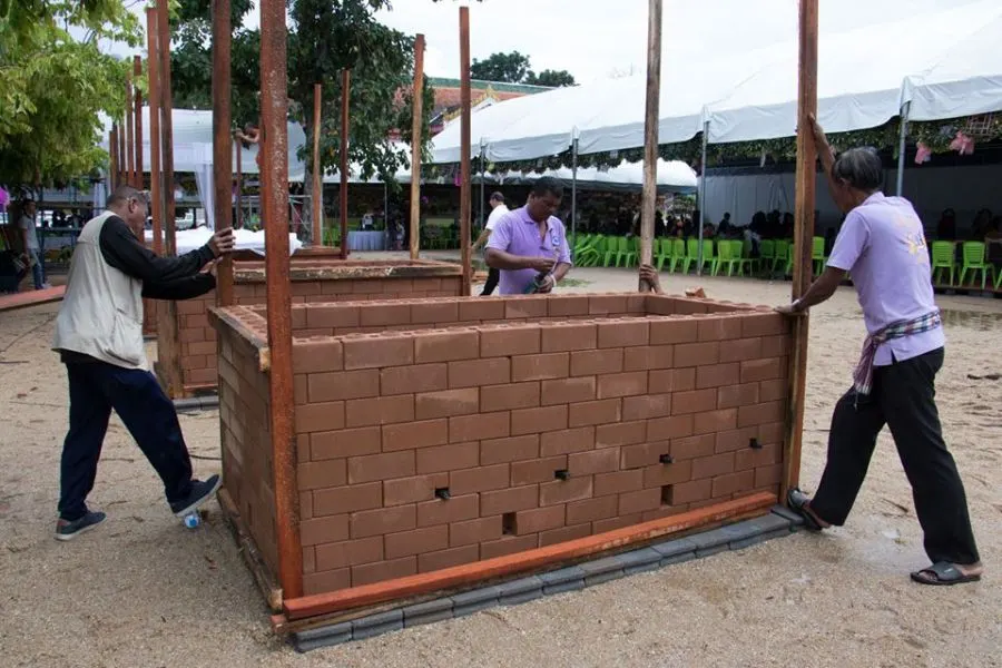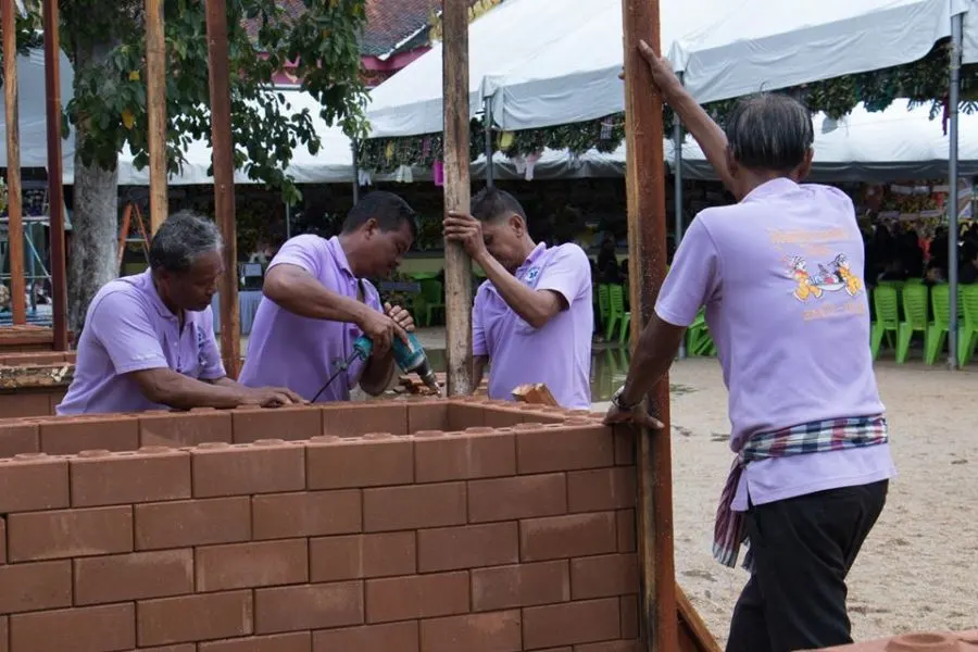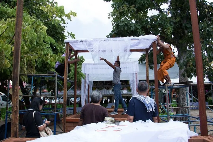 ชาวบ้านร่วมกันสร้างเมรุเผาศพชั่วคราว เพื่อให้กับผู้เสียชีวิต จากเหตุยิงป้อม ชรบ.ลำพะยา