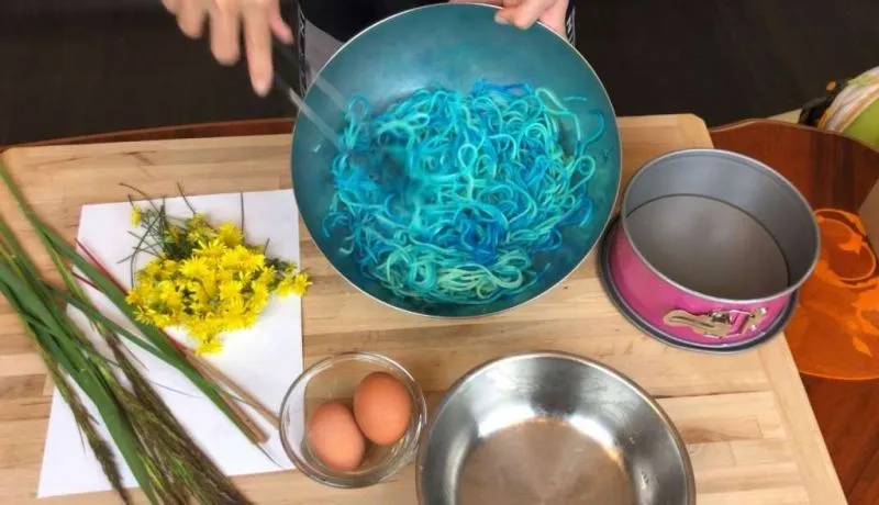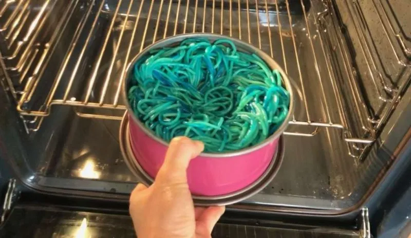 1 ใส่สีผสมอาหาร กับเส้นสปาเก็ตตี้
