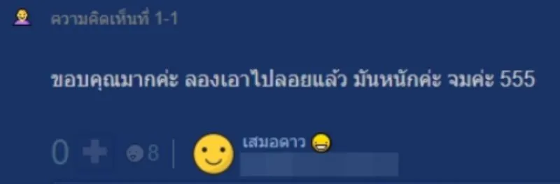 ทั้งนี้ เมื่อมีสมาชิกท่านอื่นเข้ามาแสดงความเห็นสอบถามว่า กระทงจากเส้นสปาเก็ตตี้สามารถลอยน้ำได้ใช่ไหม เจ้าของกระทู้ก็เข้ามาตอบว่า ลองเอาไปลอยแล้ว มันหนักค่ะ จมค่ะ 555
