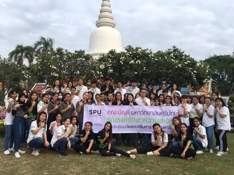 คณะบัญชี มหาวิทยาลัยศรีปทุม นำทีมผู้บริหาร คณาจารย์และนักศึกษาคณะบัญชี ทำกิจกรรมจิตอาสา ทำความดีด้วยหัวใจ ด้วยการทำความสะอาด เก็บเศษขยะ เศษกระทง ภายในบริเวณโดยรอบ เขตวัดพระศรีมหาธาตุวรมหาวิหาร บางเขน กรุงเทพฯ เนื่องจากทางวัดได้จัดกิจกรรมเทศกาลวันลอยกระทง ซึ่งคณะบัญชี SPU ได้จัดกิจกรรมดังกล่าวเพื่อปลูกฝังให้นักศึกษาคณะบัญชี เป็นผู้มีจิตอาสา มีน้ำใจ เสียสละ มีความสมัครสมานสามัคคี และมีส่วนร่วมรับผิดชอบต่อสังคม ด้วยการทำกิจกรรมจิตอาสา