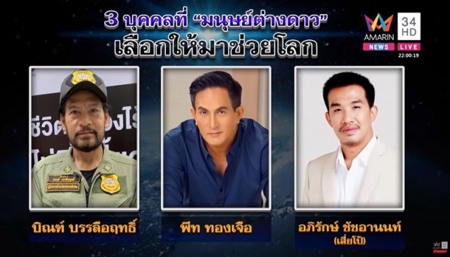 ที่น่าตกใจ เจ้าตัวบอก มนุษย์ต่างดาว เลือกบุคคล 3 คน ให้ช่วยโลก คือ บิณฑ์ บรรลือฤทธิ์ , พีท ทองเจอ และ อภิรักษ์ ชัชอานนท์ หรือ เสี่ยโป้