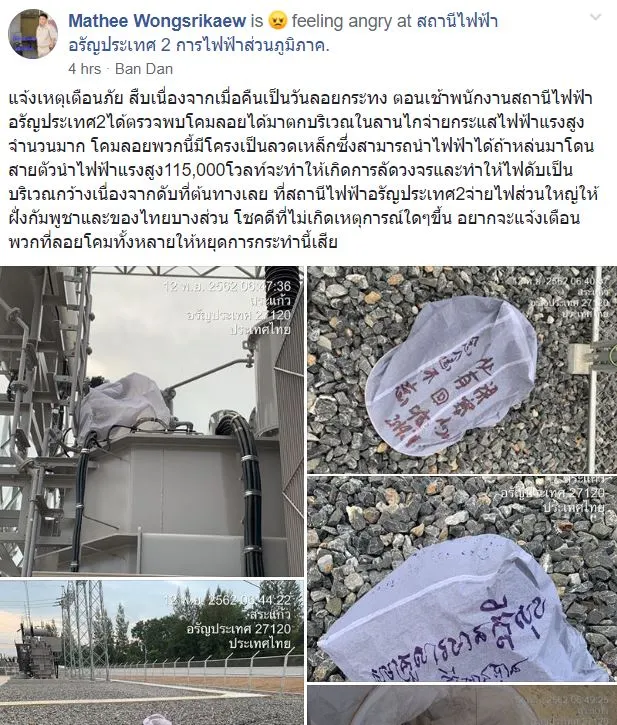 โดยผู้ใช้เฟซบุ๊ค Mathee Wongsrikaew เจ้าหน้าที่การไฟฟ้าส่วนภูมิภาค อยู่ที่ สถานีไฟฟ้าอรัญประเทศ 2 การไฟฟ้าส่วนภูมิภาค ได้เผยภาพเหตุการณ์ดังกล่าว