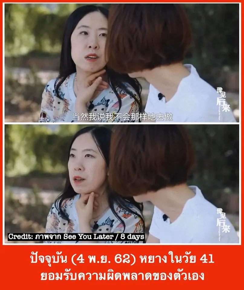 41- การให้สัมภาษณ์ครั้งก่อนเมื่อปี 2557 หยางยังกล่าวโทษหลิวเต๋อหัวอยู่บ้าง แต่ครั้งนี้เธอยอมรับความผิดพลาดของตัวเอง และบอกว่าหากย้อนเวลากลับไปได้ เธอจะไม่ทำแบบนั้น