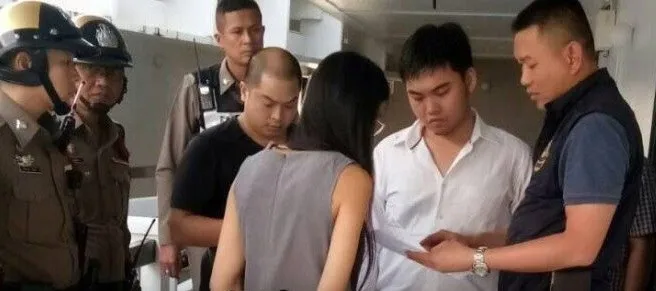 ตำรวจศาล (สวมเครื่องแบบ) ได้ยืนอยู่กับนายธนากร (สวมเสื้อขาว กลางเกงดำ) ซึ่งเป็นเสมียนทนาย ตรงประตูทางเข้าห้อง ซึ่งจะเห็นว่าตำรวจศาลได้ยื่นปืนประจำตัวให้นายธนากร