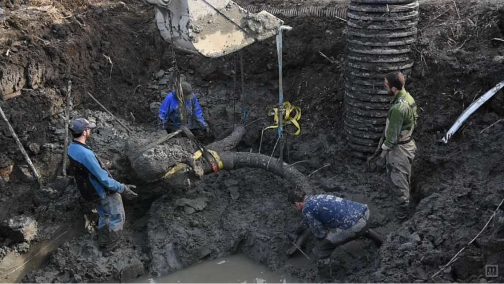 โดย เจ้าหน้าที่มาตรวจสอบและได้ลงพื้นที่สำรวจพบว่าเป็นซากกระดูกของช้างเเมมมอธ หลังจากขุดลงไปเรื่อยๆก็พบชิ้นส่วนกระดูกมากมาย รวมไปถึงกระโหลก งาคู่ ซี่โครง ซึ่งคาดว่าอาจเสียชีวิตเมื่อราว 10,000 ปี