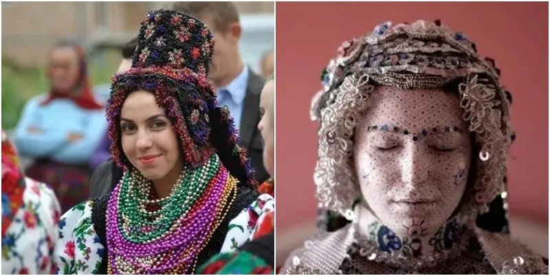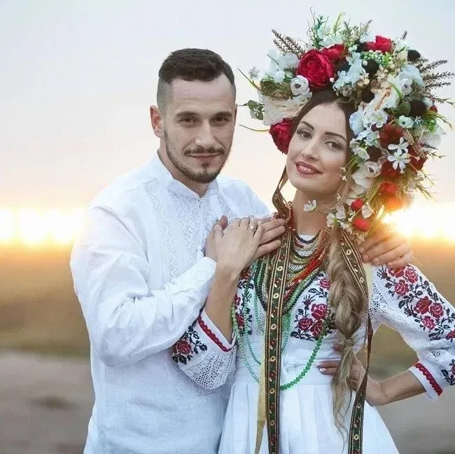 เจ้าสาวยูเครนสวมชุดแต่งงานที่ปักด้วยลวดลายดอกไม้ และพวกเธออาจสวมผ้าโพกศีรษะที่ทำจากดอกไม้สีสดใส