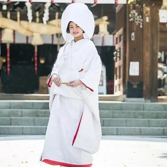 เจ้าสาวญี่ปุ่นมักสวมชุดกิโมโนสีขาวบริสุทธิ์ที่เรียกว่า“ uchikake” ในวันแต่งงาน