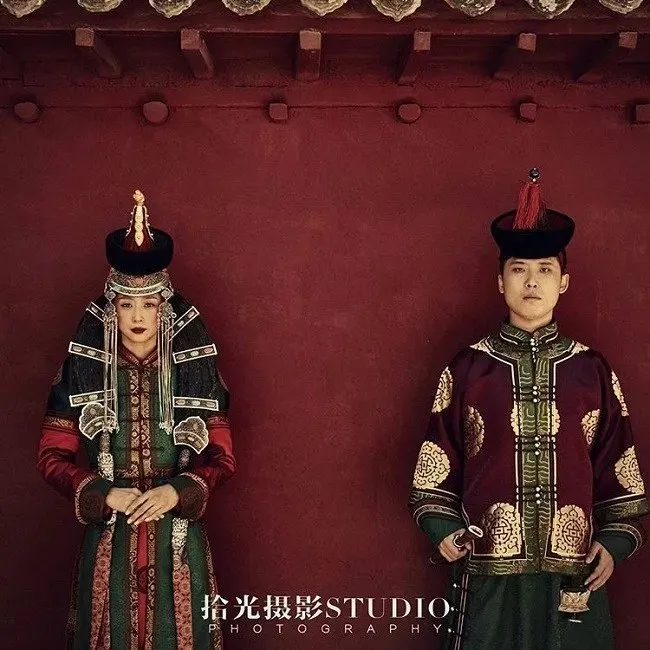 ในวันแต่งงานเจ้าสาวมองโกเลียจะสวมชุดลวดลายที่เรียกว่า "deel"