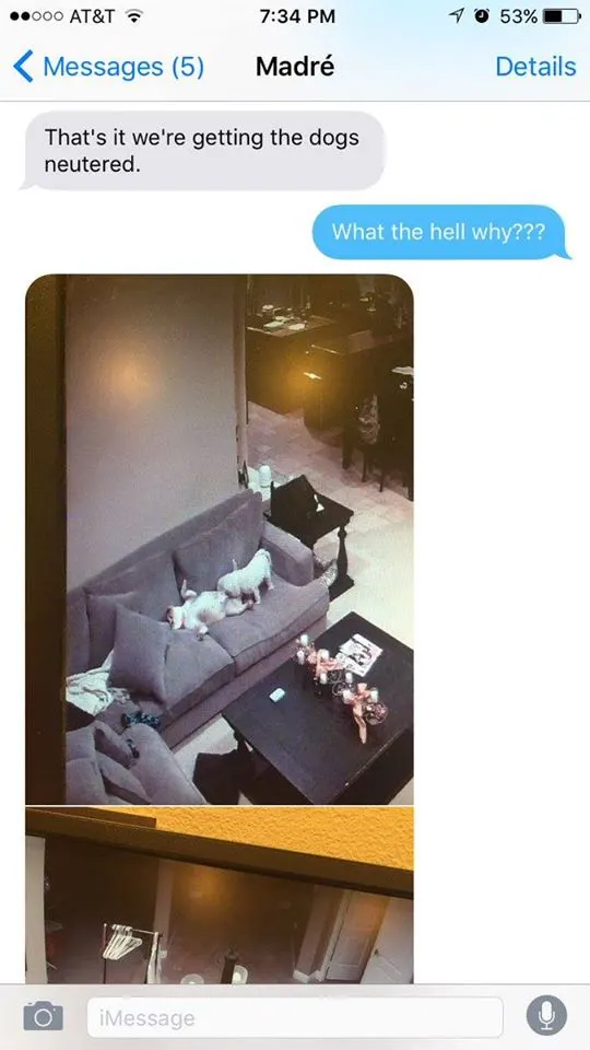 จากในภาพเผยให้เห็นว่าเจ้าสุนัข 2 ตัวนี้กำลังทำท่าแปลก ๆ ที่ไม่สามารถอธิบายเป็นคำพูดได้ ทำเอาเจ้าของบ้านเห็นแล้วถึงกับกลั้นขำแทบไม่อยู่เลยทีเดียว