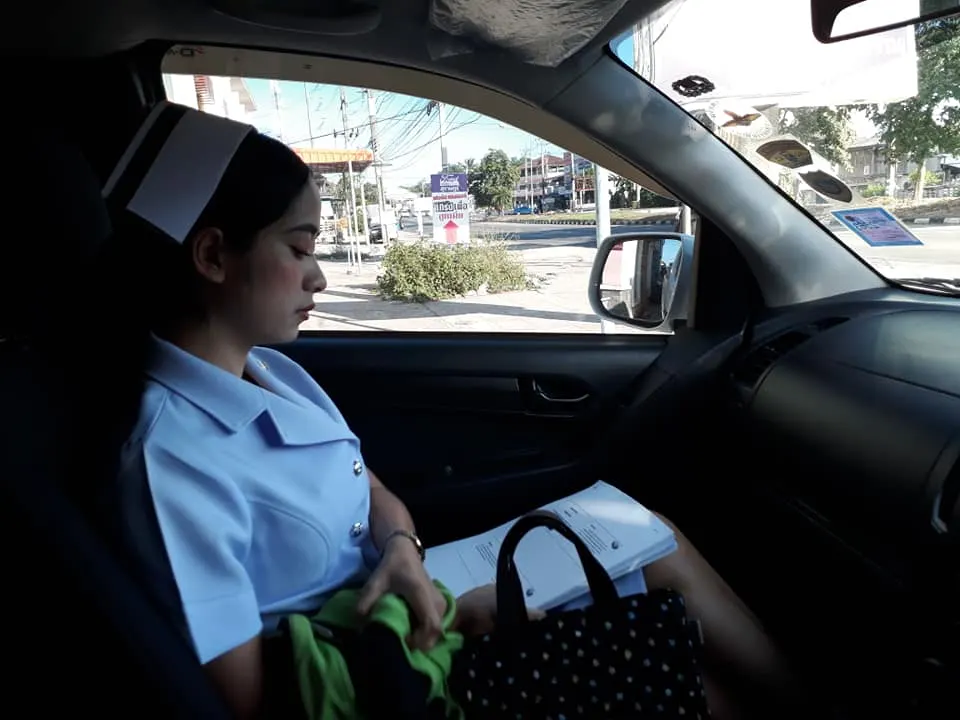 กว่าจะหาเวลาเจอกันได้แต่ละครั้ง อยู่ด้วยกันก็เลยเริ่มเข้าใจ ไปรับขึ้นรถได้ทีไรหลับตั้งแต่ยังไม่เลยประตู รพ.ทุกครั้ง กลับถึงห้องหิวทุกอย่างที่ขวางหน้า ……….กลับกลายเป็นเราที่เป็นฝ่ายดูแลเขาแทน ไปรับ-ส่ง ทำกับข้าว รีดผ้า ซักผ้า ไว้ให้กลับมาจะได้พัก (เห้อฝันในวันนั้น)5555 คิดจะมีคุณคิดดีแล้วยัง