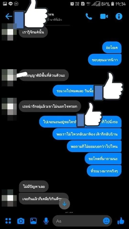 “เราตามมาดูนะ แต่ไม่เชื่อ เพราะไม่เจอรถ เลยให้เพื่อนพากลับไปที่บ้านแฟนเพื่อดูรถ ได้คุยกับพี่สาวแฟนว่าเค้าเอารถอีกคันมา เราเลยกลับมาที่หอเพื่อนที่เดิม ก็เจอรถคันที่เอามาจริงๆ บวกกับเราสงสัยผู้หญิงอยู่คนนึง ที่เค้ากดรักโพสแฟนเรา เราเลยทักไปถามอย่างที่เห็น”