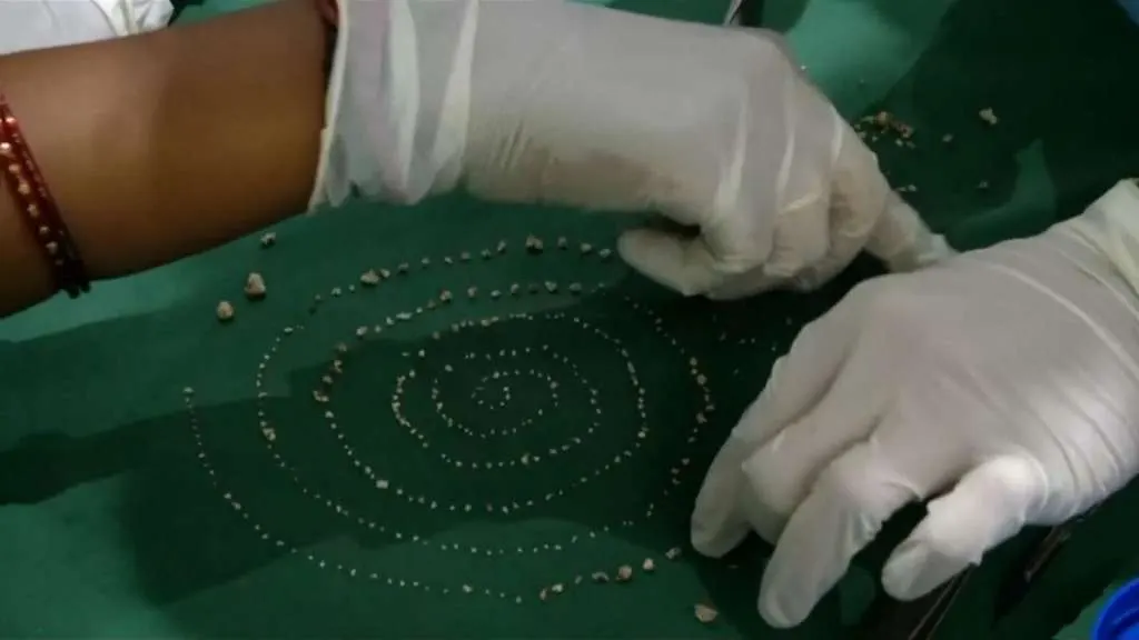 พวกเขาจึงทำการผ่าเอาก้อนเนื้อนั้นออก และต้องตะลึงหนักกว่าเดิมเพราะหลังตรวจสอบเนื้อก้อนนั้นเมื่อผ่าดูพบกลุ่มฟันหลายร้อยซี่กระจุกตัวอยู่ในบริเวณเดียวกัน เมื่อนำออกมาเรียงแล้วนับก็พบฟันกว่า 526 ซี่