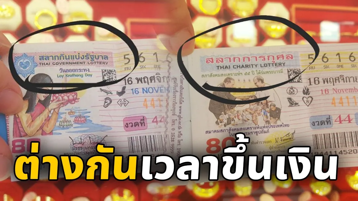 เดี๋ยวนี้สลากกินแบ่งรัฐบาล เค้าออกมา สองแบบนะ คือ สลากกินแบ่งรัฐบาล และ สลากการกุศล แตกต่างกันยังไง แบบสลากกินแบ่งรัฐบาล ถ้าเราถูก แล้วไปขึ้นเงิน เราจะถูกหักอยู่ที่ 05 บาท แต่สลากการกุศุลจะถูกหักที่ 1 บาท แต่โดยทั่วไปคนถูกเลขท้ายตามต่างจังหวัด ก็คงไม่มีใครไปขึ้นเงินที่กองสลากหรอก จริงมั้ย ก็จะโดนหักแบบ สลากกินแบ่งรัฐบาล 2 บาท สลากการกุศล จะโดน 3 บาท ประมานนี้ เวลาซื้อควรดูดีๆ เพราะใบคู่ พวกใบหลังเค้าจะชอบหนีบ สลากการกุศลพ่วงมา ถามว่า เยอะไปมั้ย งกเหรอ กับการกุศล คือก็ไม่หรอก แต่การจะทำบุญใดๆ ควรเกิดจากความเต็มใจ อยากให้ อยากทำ รับรู้ และได้รู้ถึงผู้รับ ว่าคืออะไร คือใคร เงินตรงนี้ หักจากราคาหน้าสลากที่ 80 ใช่มั้ย ไม่ใช่ถูกแล้ว มาหักเราว่าต้องบริจาคนะ บังคับไปในตัว แต่โดนมาแบบนี้ มันไม่ใช่อ่ะ