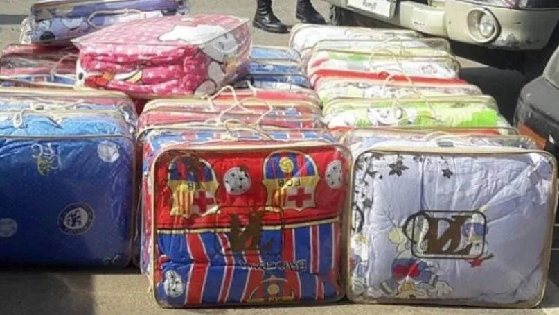 เจ้าหน้าที่ทหารประจำด่านตรวจจึงขอตรวจค้น พบนายหุ จันทร์อยู่จริง อายุ 53 ปี อยู่บ้านเลขที่ 69/3 หมู่ที่ 7 ต.โคกว่าน อ.ระหารทราย จ.บุรีรัมย์ เป็นคนขับ หลังเลิกผ้าใบออกพบผ้าห่มนวม มาเต็มกระบะหลัง ประมาณ 100 ผืน ในจำนวนนี้มี ผ้าห่มนวม ละเมิดลิขสิทธิ์ ทั้งลายการ์ตูนและทีมฟุตบอลชื่อดัง ปะปนมาราว 20 ผืน จึงตรวจยึดส่งมอบให้กับศุลกากรอรัญประเทศดำเนินการตามกฎหมาย