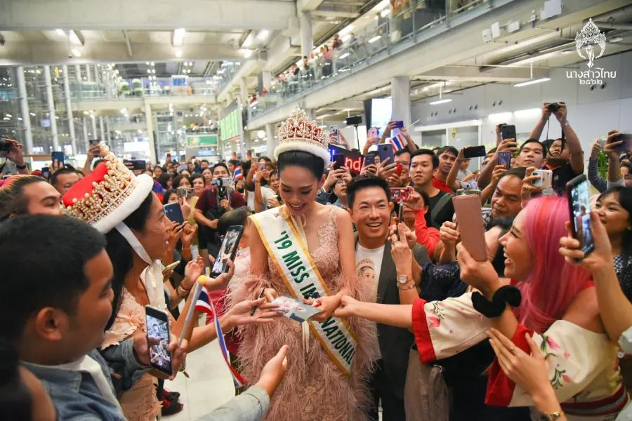 ภาพบรรยากาศการต้อนรับ Miss International 2019 กลับเมืองไทย อย่างอบอุ่น สมกับการรอคอยมงนี้มา 52 ปี สมกับความตั้งใจที่ "น้องบิ๊นท์ สิรีธร ลีห์อร่ามวัฒน์" นางสาวไทยประจำปี 2562 ได้ต่อสู้ฝ่าฟันมาให้พวกเราชาวไทยได้ชื่นชมเป็นครั้งแรกในประวัติศาสตร์ไทย