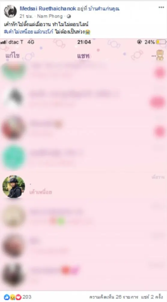 เค้าทักไปตั้งแต่เมื่อวาน ทำไมไม่ตอบไลน์