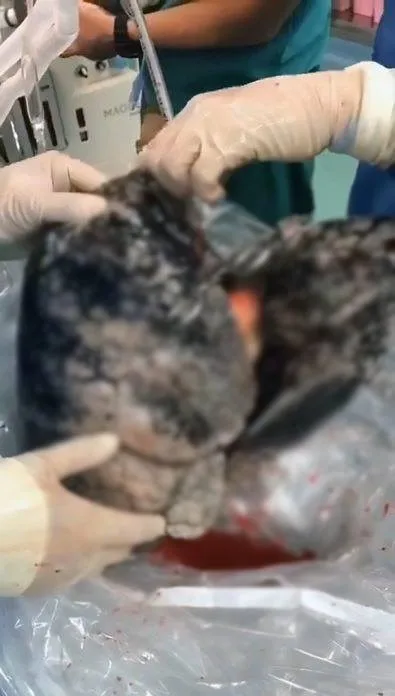 ปอดดำขนาดนี้เลย แถมถุงลมโป่งพองอีก ใช้การไม่ได้เพราะสูบบุหรี่ติดต่อกันนานถึง 30 ปี