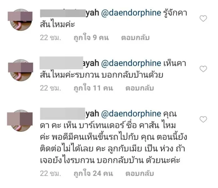 จากกรณีในเพจ เจ๊มอย 108 โพสต์ข้อความระบุว่า สาวอุ้มลูกตามหาผัวกลางไอจี “แม่ดา เอ็นโดรฟิน” หลังติดต่อผัวไม่ได้ แล้วอ้างว่ามีคนเห็นแม่ขึ้นรถไปด้วยกัน ปล.ไม่จริงใช่มั้ยแม่.. แต่อิแมวไปเที่ยวเมื่อคืน มันบอกเห็นแม่ไปดื่มตั้งแต่ 3 ทุ่ม ยันตี 3 เองนะ แถมยังมีการเข้าไปทำค็อกเทลในบาร์อีกด้วย บ้าจริง!!