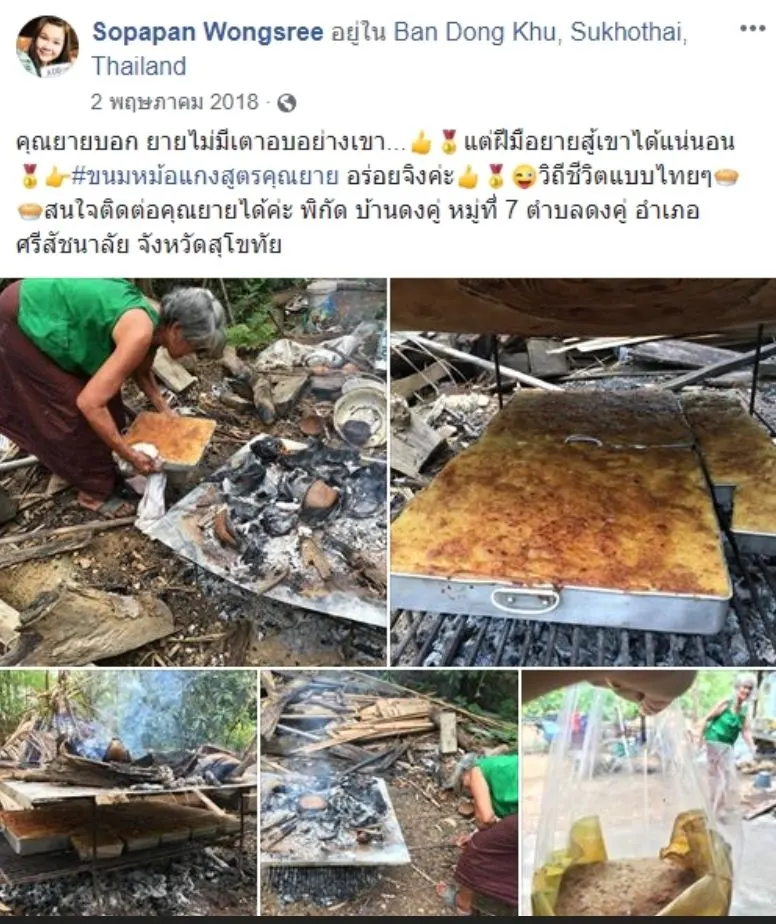 คุณยายได้บอกว่า ไม่มีเตาอบอย่างใครเขา แต่ผืมือของคุณยายสู้ได้อย่างแน่นอนเพราะขนมหม้อแกงของคุณยายนั้น อร่อยเป็นอย่างมาก และยังเป็นการใช้วิธีอบขนมแบบไทยๆ โดยสามารถไปอุดหนุนคุณนานได้ที่ ตำบลดงคู่ อำเภอศรีสัชนาลัย จังหวัดสุโขทัย โดยถ้าหากใครสนใตก็สามารถเข้าพิสูจน์ ความอร่อยอุดหนุนคุณยาย กัน