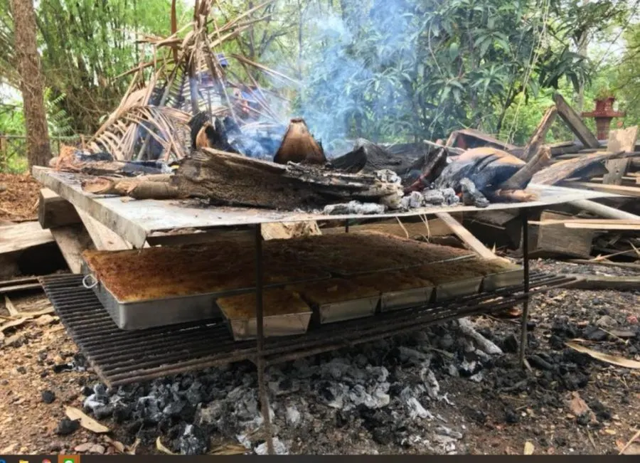 คุณยาย จ.สุโขทัย อบขนมด้วยภูมิปัญญาชาวบ้านจากการนำกากมะพร้าวและฟืนมาวางบนสังกะสี เพื่อถายเทความร้อน ในการอบขนมหม้อแกง และด้วยความหอมของการอบแบบนี้ทำให้ลูกค้าทานได้กันอย่างอร่อย