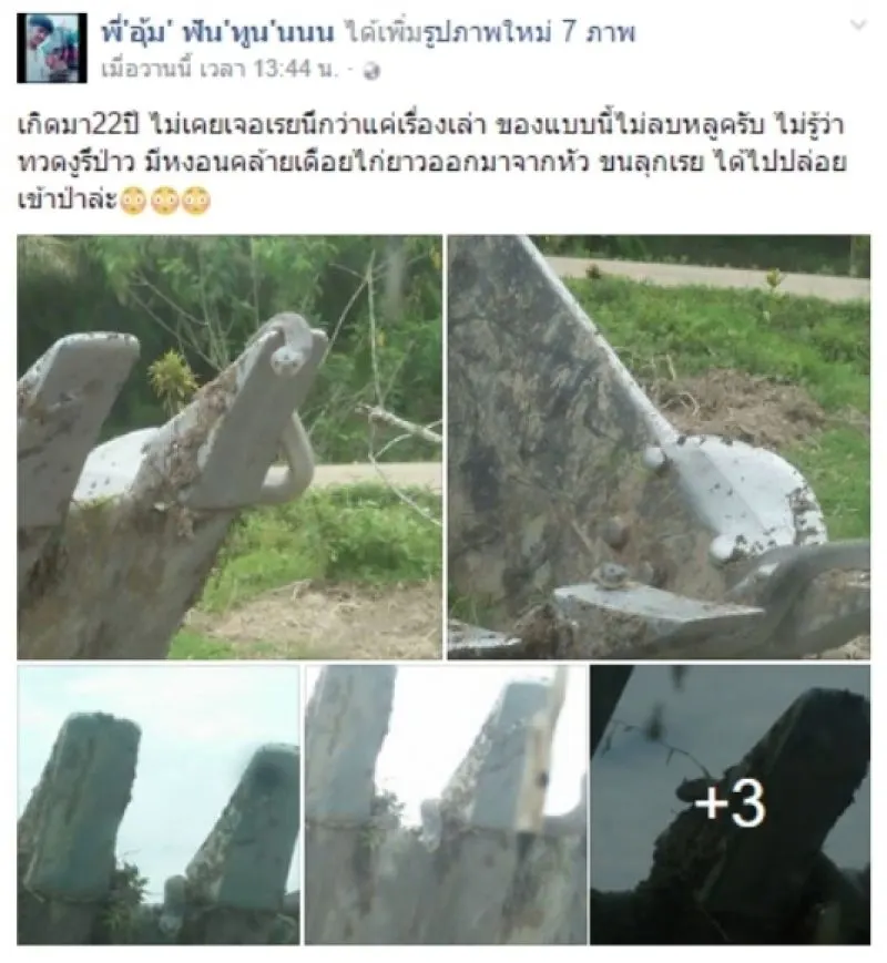 เกิดมา 22 ปี ไม่เคยเจอเลยนึกว่าแค่เรื่องเล่า ของแบบนี้ไม่ลบหลู่ครับ ไม่รู้ว่าทวดงูรึป่าว มีหงอนคล้ายเดือยไก่ยาวออกมาจากหัว ขนลุกเรย ได้ไปปล่อยเข้าป่าล่ะ
