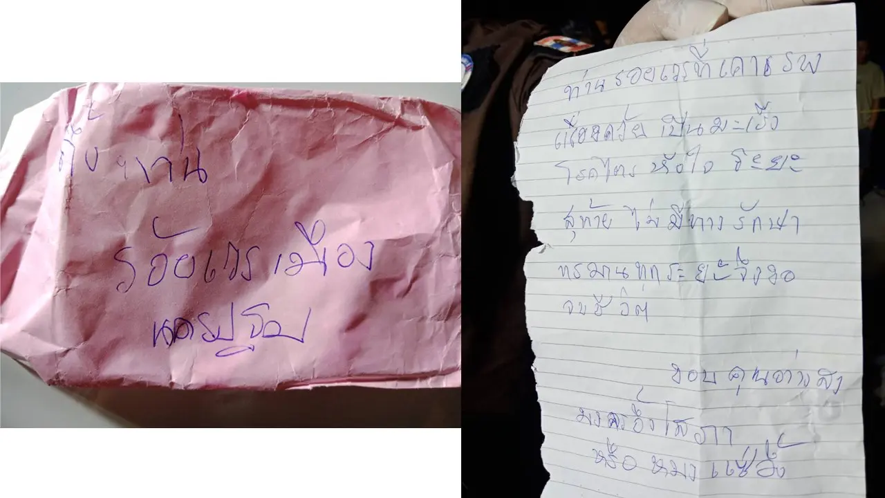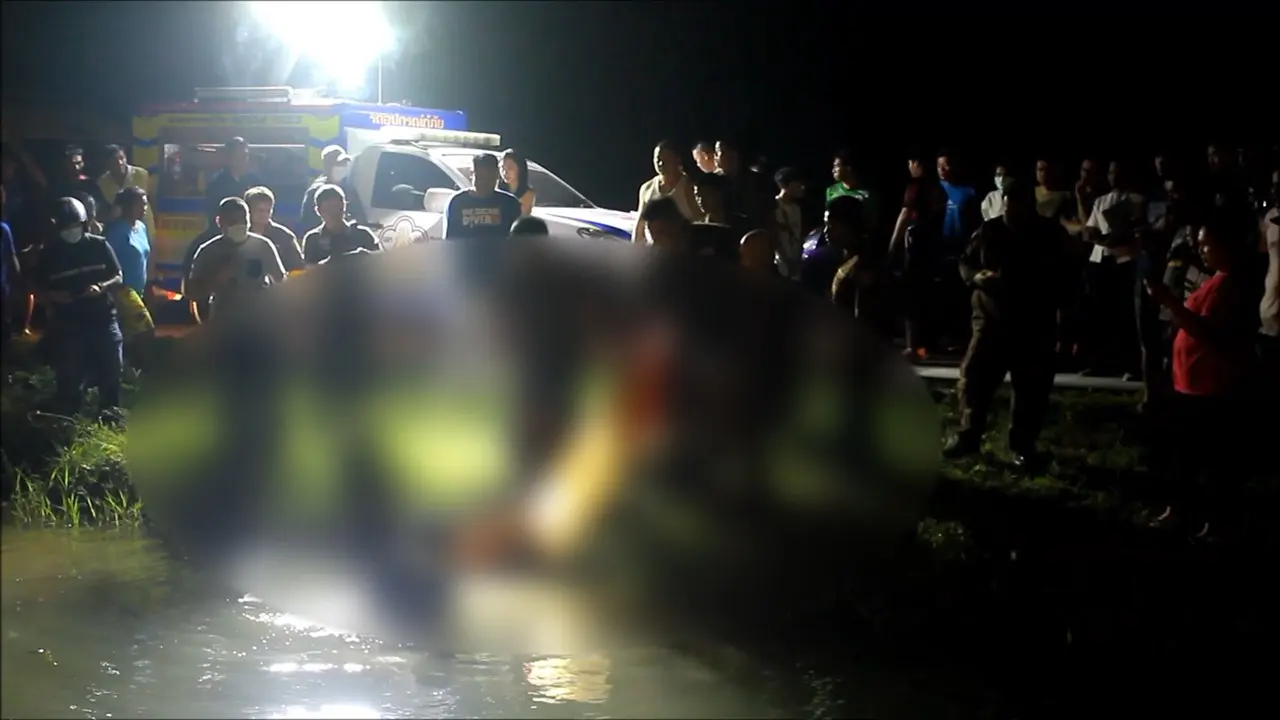 ที่เกิดเหตุพบชาวบ้านเป็นจำนวนมากกำลังมุงดูอยู่สองฝั่งคลอง ส่วนศพผู้เสียชีวิตพบลอยคว่ำหน้าอยู่ในน้ำ ซึ่งทางเจ้าหน้าที่ จึงได้ช่วยกันนำร่างขึ้นมาตรวจสอบ ซึ่งระหว่างนี้ มีชาวบ้านที่มามุงดูอยู่ ได้ส่งเสียงร้องตะโกนว่า ก๋ง ก่อนที่จะรีบวิ่งข้ามฝั่งมาดู และพบว่าผู้เสียชีวิต คือก๋งของตัวเอง ถึงกับร่ำไห้ด้วยความเสียใจ ตรวจสอบในกระเป๋ากางเกงผู้เสียชีวิต พบมีถุงพลาสติกรัดยางหนังสติ๊ก ซึ่งเมื่อแกะออกมาดูพบว่าในถุงมีซองจดหมายสีชมพู จ่าหน้าซองว่า