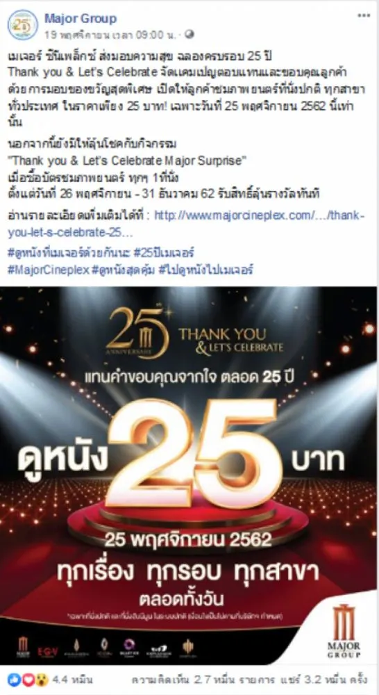 เมเจอร์ ซีนีเพล็กซ์ ส่งมอบความสุข ฉลองครบรอบ 25 ปี