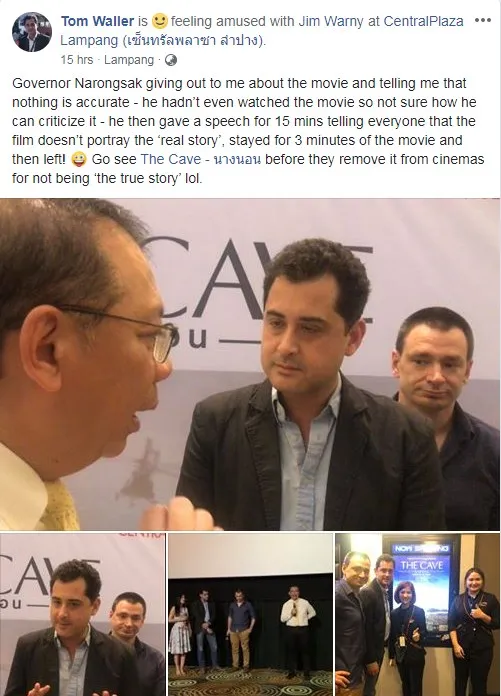 สมาชิกเฟซบุ๊กMan On Film เปิดเผยความคืบหน้าล่าสุด ของกระแสหนัง The Cave นางนอน โดยแชร์โพสท์ ของผกก. หนัง ทอม วอลเลอร์ ได้เขียนถึงผู้ว่าฯ รงค์ศักดิ์ โอสถธนากร ที่ห้างเซ็นทรัลลำปาง ก่อนฉายหนัง 'นางนอน' เมื่อวันที่ 25 พ.ย. (วานนี้) ท่านออกมาบอกแล้วว่าเนื้อหาในหนังไม่มีอะไรที่ถูกต้องเลยสักอย่าง ท่ามกลางชาวเน็ตหลายคนออกมาแสดงความคิดเห็นว่า เนื้อหาหนังทำให้คนไทยหน้าชา แถมยังชำแหละระบบล่าช้าของราชการไทยแบบไม่ไว้หน้ากันเลย และชาวเน็ตต่างห่วงว่าหนังจะโดนแบน โดยมีเนื้อหาดังนี้