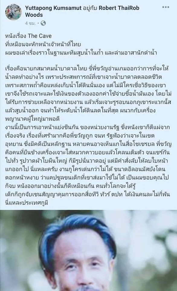 ผู้ว่าฯ ณรงค์ศักดิ์ โต้กลับผกก.หนัง The Cave ชี้ ไม่มีอะไรที่ถูกต้องเลยสักอย่าง
