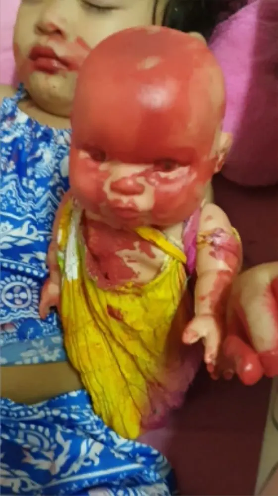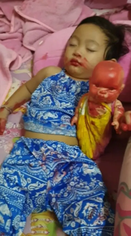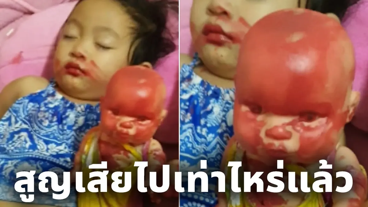 หนูน้อยวัยขวบสองขวบเป็นวัยที่กำลังซนมากๆเลยทีเดียวจ้า เชื่อว่าแม่ๆหลายคนคงจะเหนื่อยน่าดู บางทีซนแบบวิ่งทั่วบ้าน บางทีซนแบบหยิบของไปใช้ เอาของแม่ไปเล่น เช่นเดียวกันกัลผู้ใช้เฟซบุ๊กชื่อ นางฟ้า ราตรี ที่ได้โพสต์คลิปบุตรสาวที่กำลังนอนหลับ ตัวเต็มไปด้วยคราบสีแดง โดยผู้ใช้เฟซบุ๊กดังกล่าวระบุข้อความว่า บ้านใหนต้องเสีย เครื่องสำอางค์แบบนี้บ้าง แท่งที่เท่าไหร่แล้วหนูจ๋า
