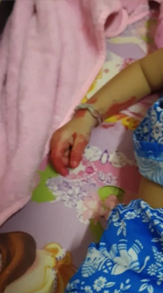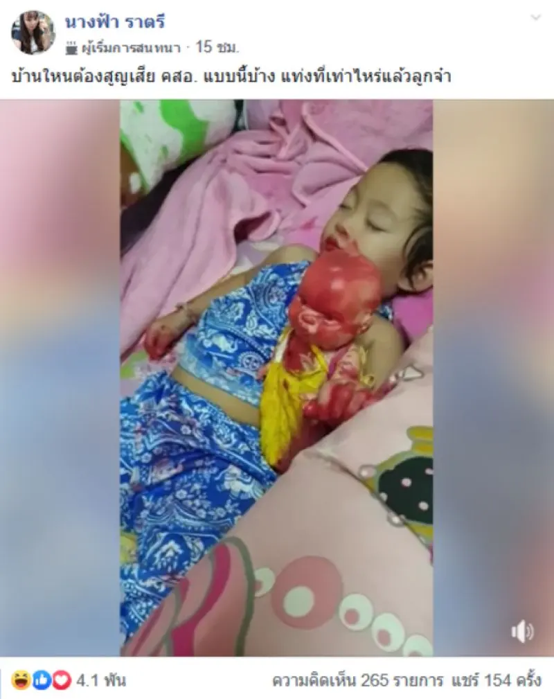 สาวโพสต์คลิปบุตรสาวกำลังนอนหลับ ตัวสีแดง