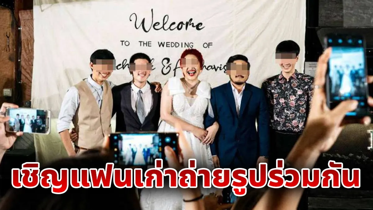 เจ้าสาวเรียกเสียงกรี๊ดลั่นงาน เชิญแฟนเก่าทุกคนขึ้นเวทีถ่ายรูปร่วมกัน เป็นรูปงานแต่งในตำนาน