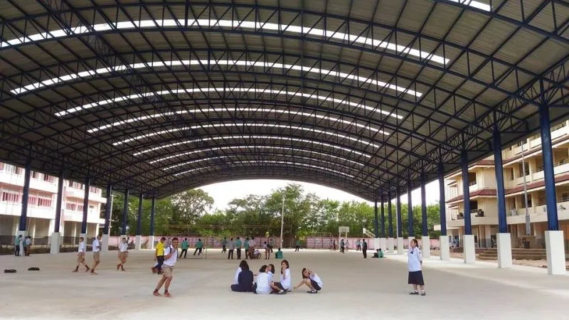 หลายโรงเรียนไม่ว่าจะเป็นในพื้นที่กรุงเทพหรือพื้นที่ตามต่างจังหวัดจะมีการสร้างโดมหลังคาอเนกประสงค์ไว้ เพื่อเวลานักเรียนเข้าแถวเคารพธงชาติตอนเช้าจะได้ไม่ต้องตากแดดที่ร้อนมาเกินไปหรือเวลาจัดกิจกรรมกลางแจ้งก็จะได้ไม่ต้องตากแดดเช่นเดียวกัน ในการสร้างนั้นสิ่งที่สำคัญคือความแข็งแรง ความทนทาน เพราะเป็นสิ่งก่อสร้างที่อยู่กลางแจ้งตลอดเวลาต้องทนทานต่อ แสงแดด ลม ฝน ให้มากที่สุด เพราะไม่อย่างนั้นอาจจะเกิดอันตรายต่อผู้ใช้งานได้